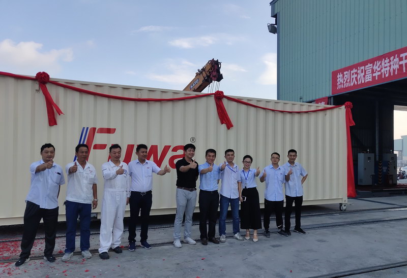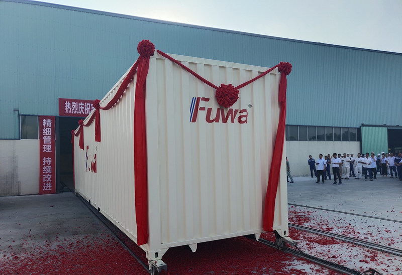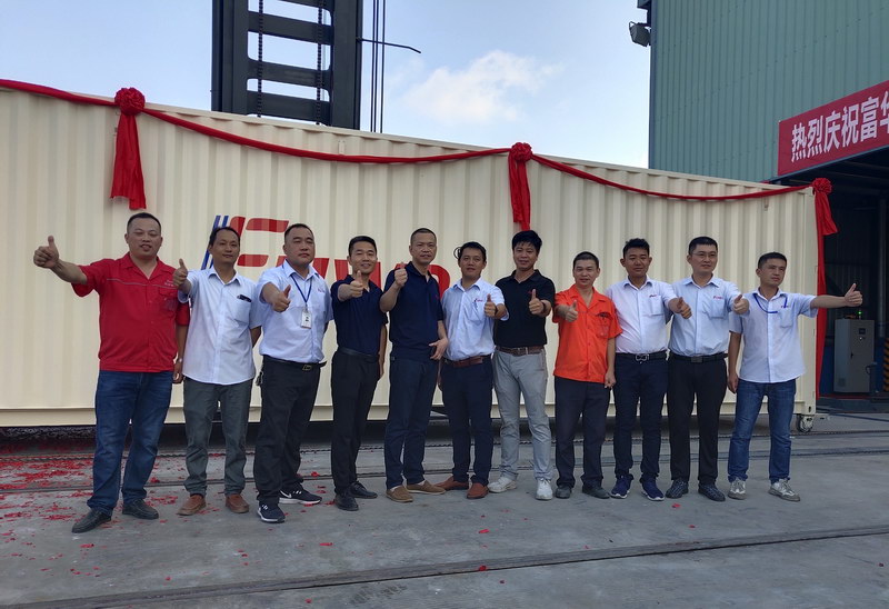 2019年6月28日,江南游戏平台特种干货箱生产线第一台集装箱在江南游戏平台人充满期待和欣喜的目光中,披着喜庆的红绸绢花,宛如出阁的大家闺秀,款款而出,此刻的她,光芒四射!
